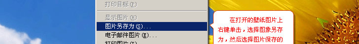 2.在图片上点右键,然后在快捷菜单中选择“图片另存为”,并且指定保存路径: